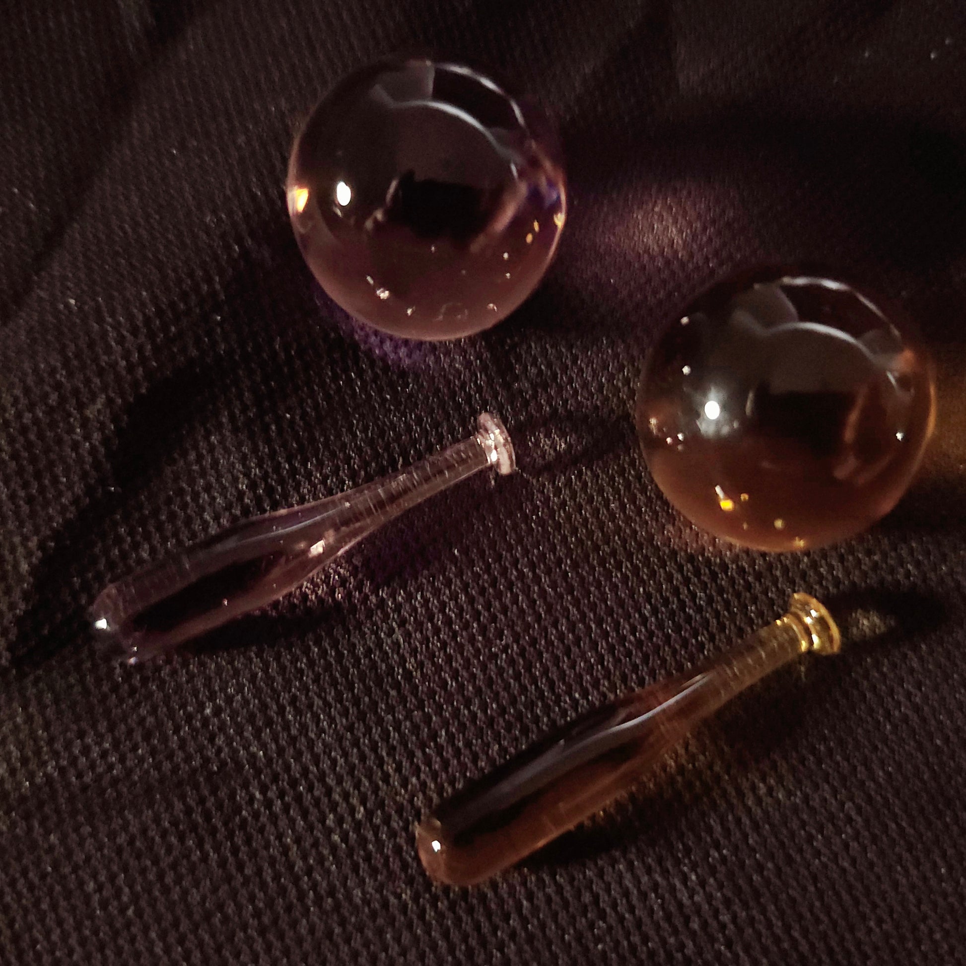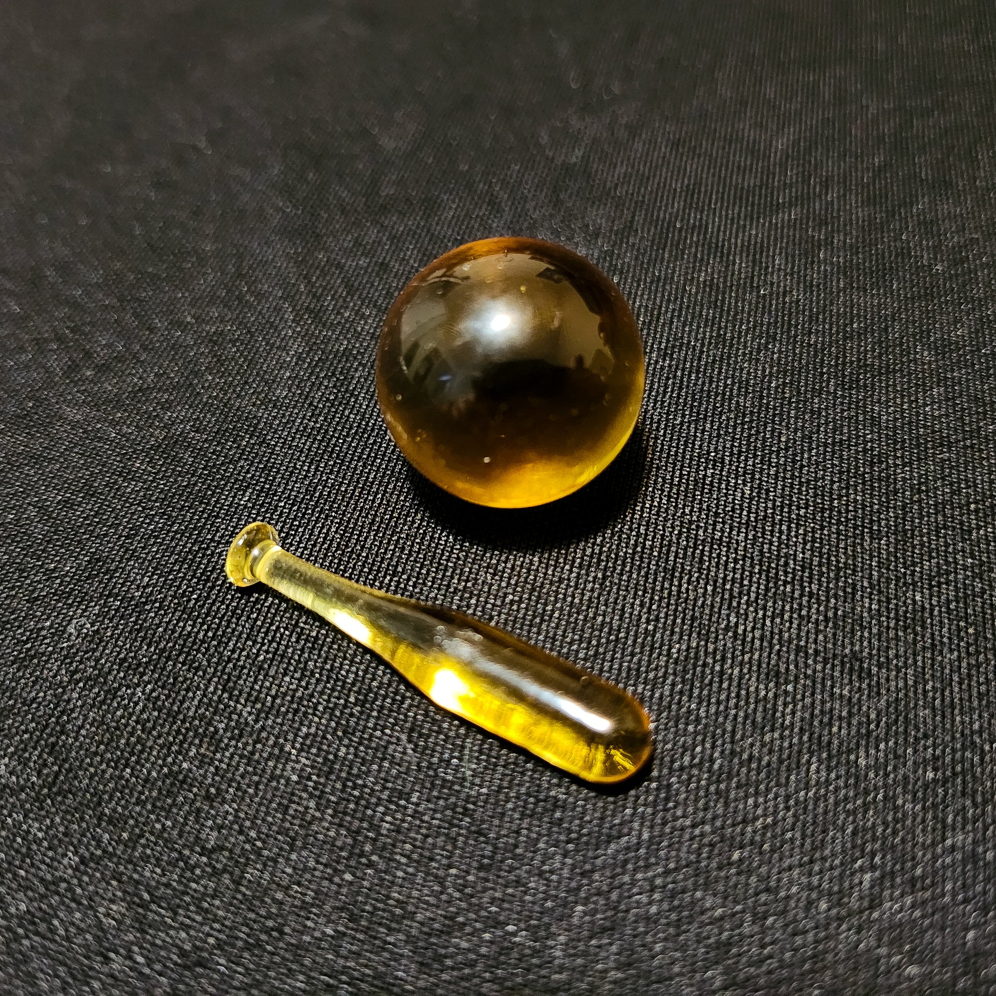 Borosilicate glass amber marble & baseball pillar set. Suitable to 16 to 20mm spinner quartz bangers & control towers.