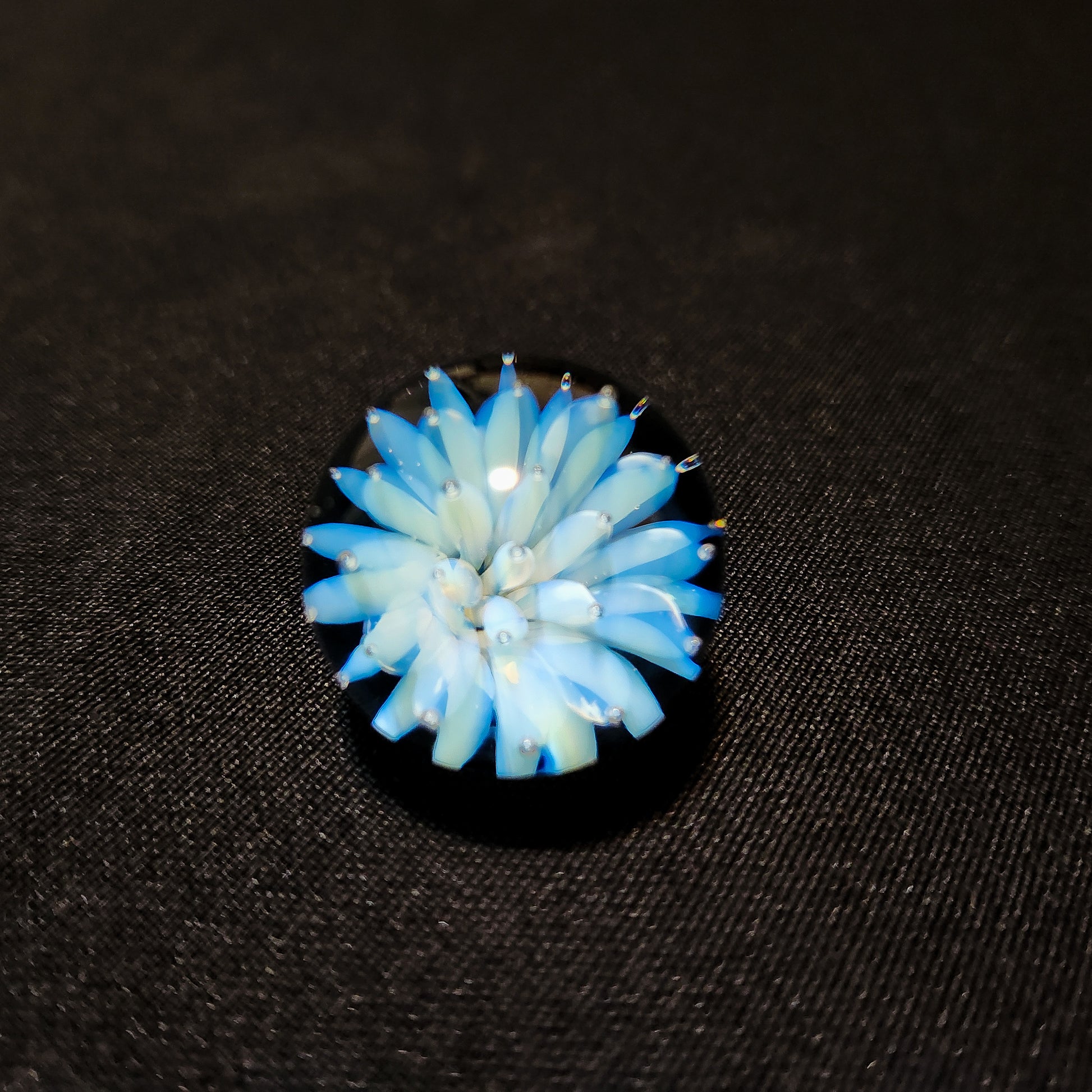 Color: clear + blue flower with black backdrop