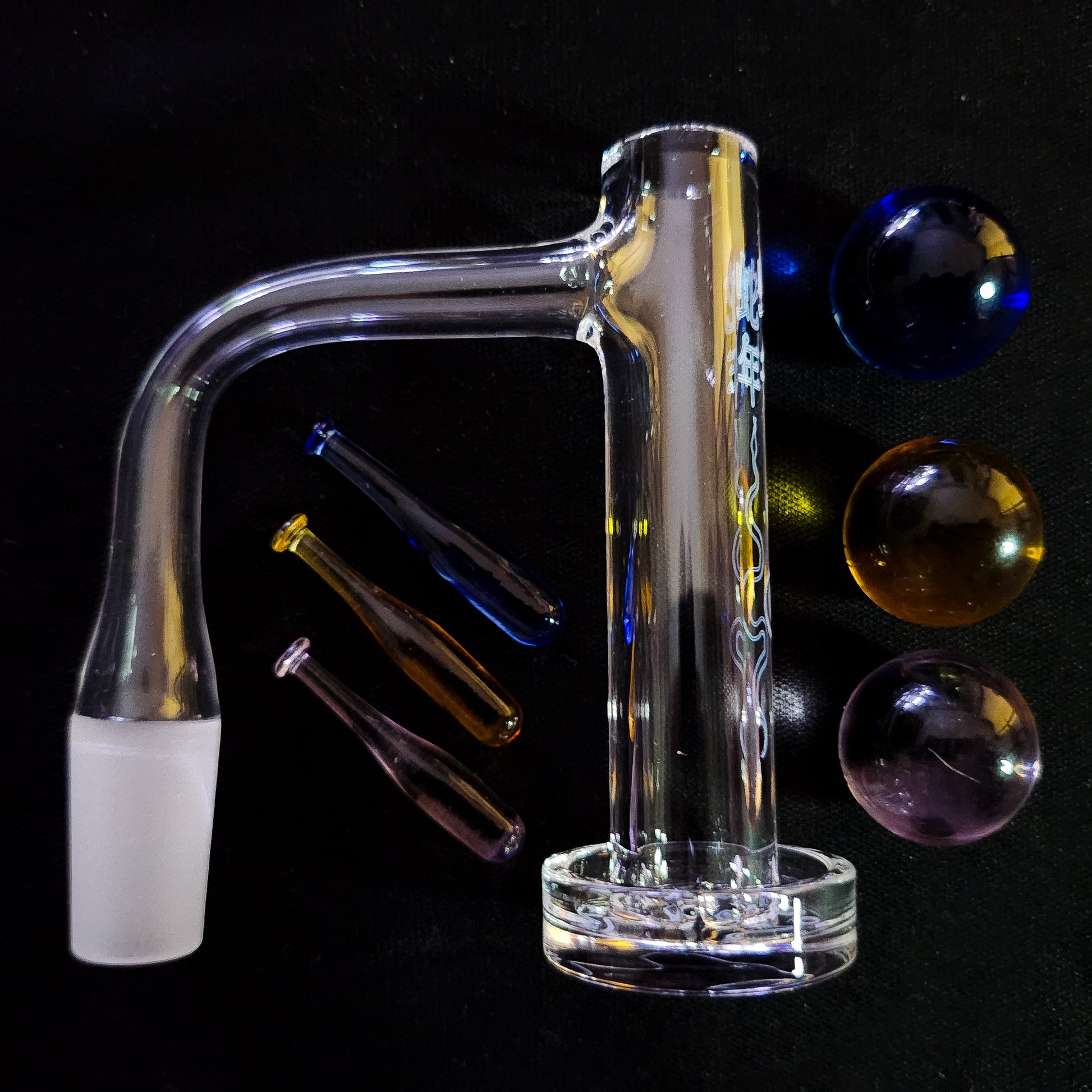 Carb Cap & Pillar: Boro Baseball pillar & Marble Set - Blue, Amber, Pink