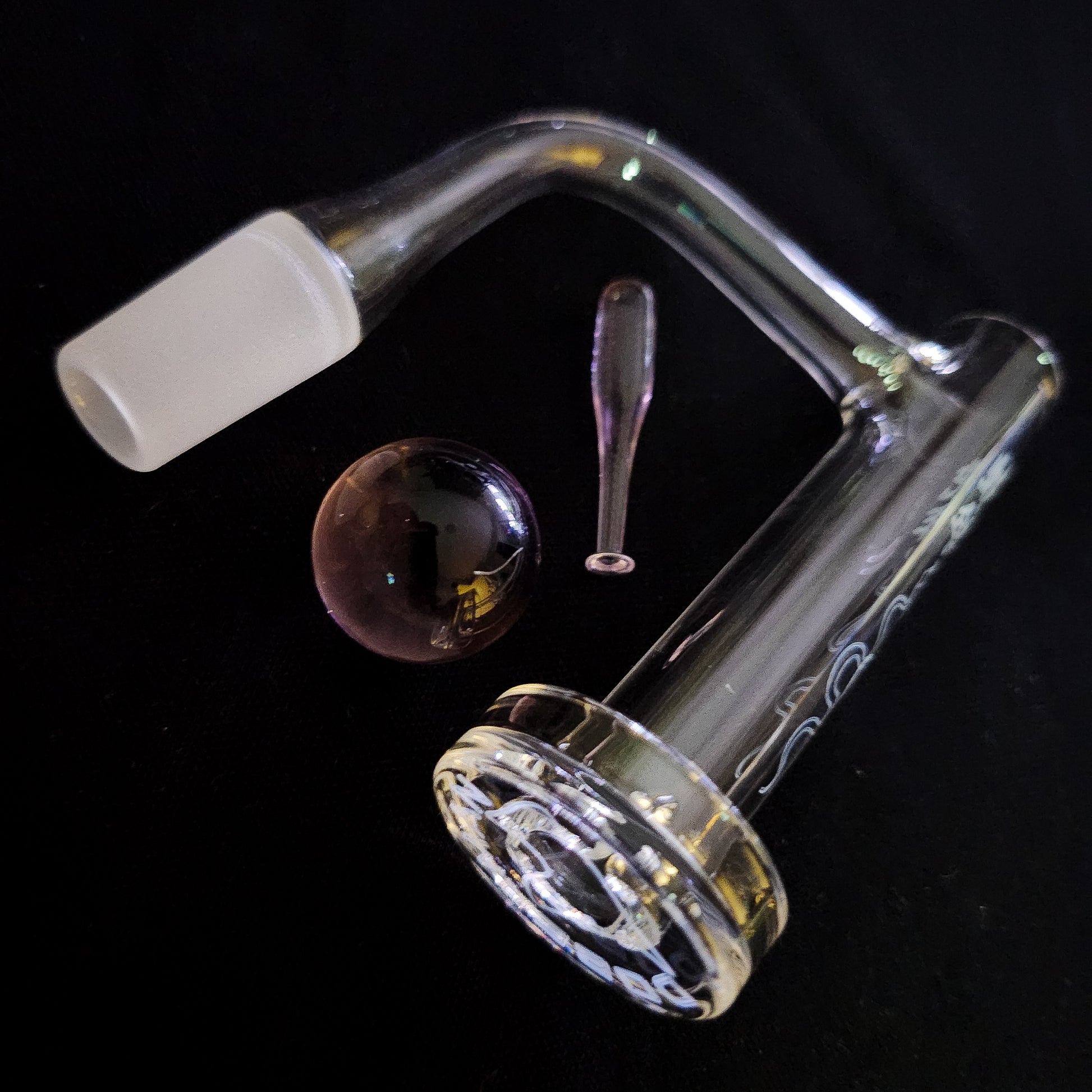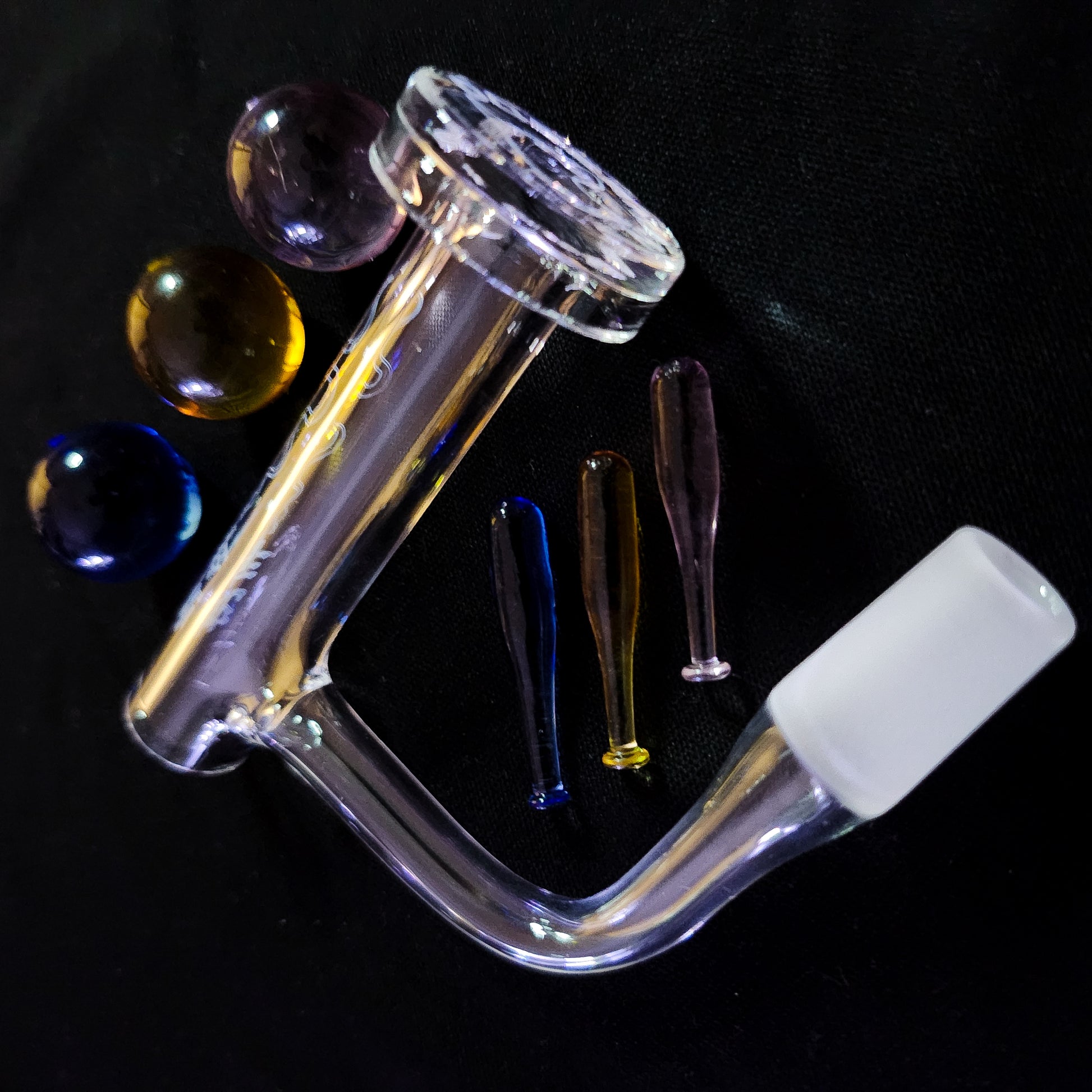 Avoid torching/heating over 650F/343C. Do not knock around and tap on solid surfaces. Always put down gently to avoid chipping/breaking, preferably onto softer surfaces once the banger has cooled to room temp. For in-between use clean, use dab cleaning specific long cotton buds. For deep-clean, make sure banger is at room temp, leave in in alcohol for 1 to 2 hours. Torch any black residue off (remember to avoid overheating/burning to extent possible).