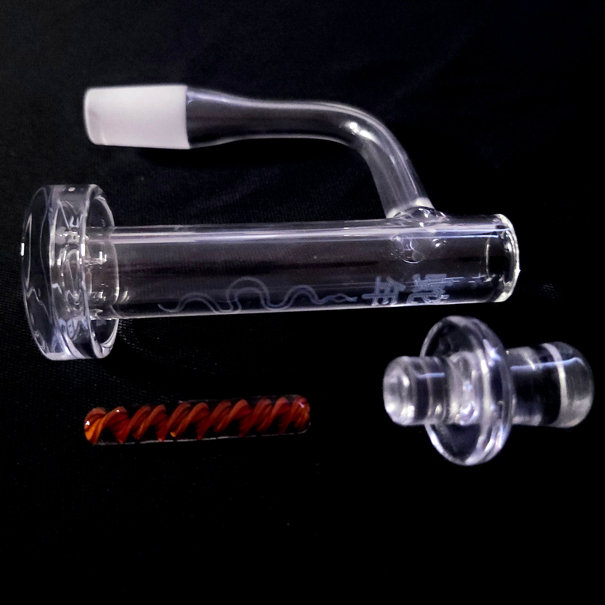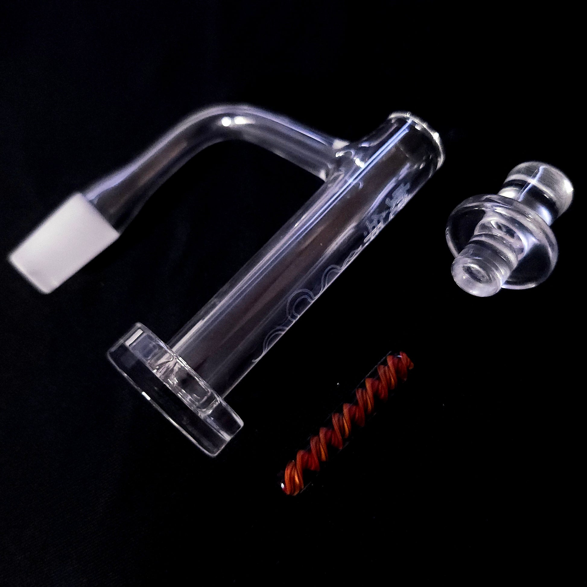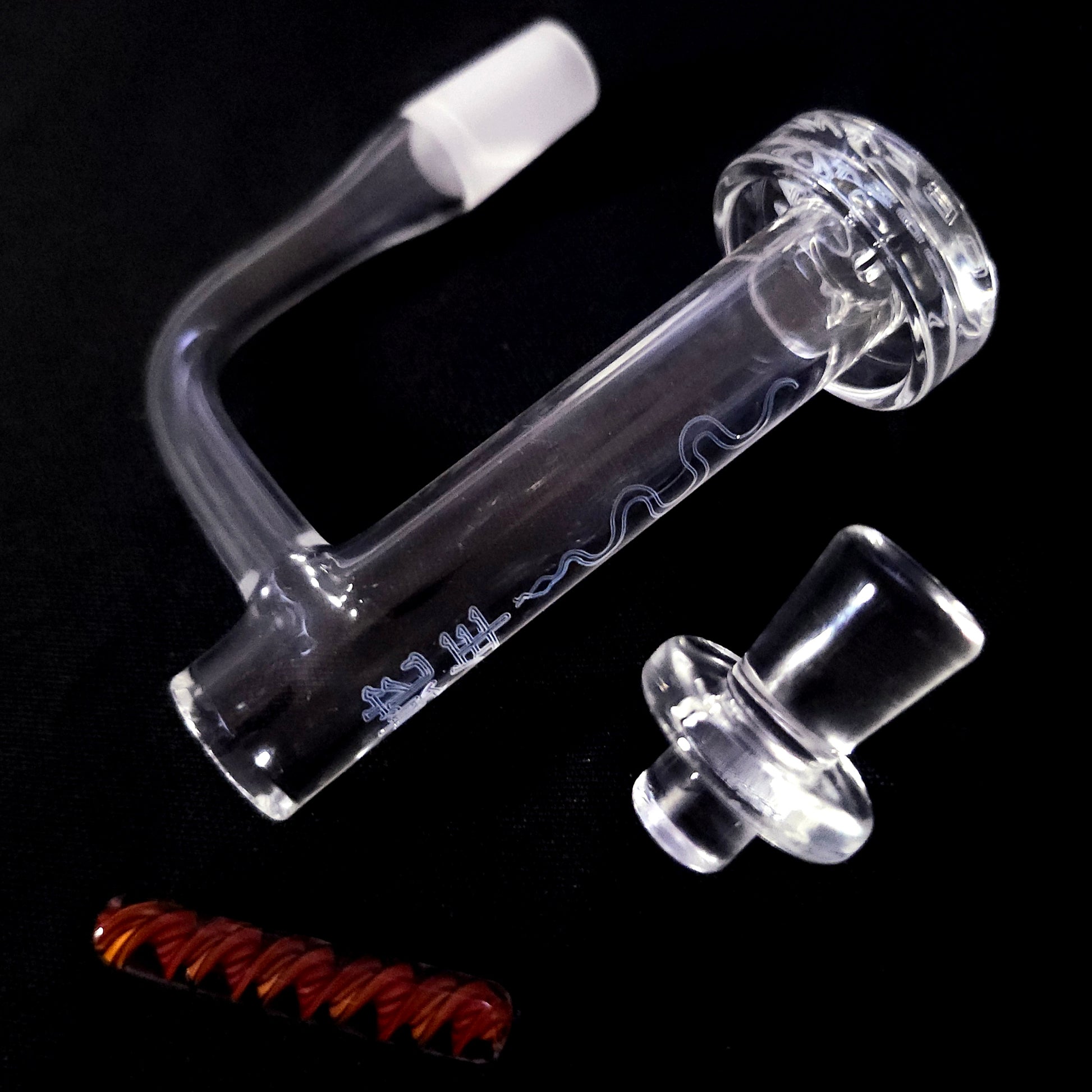 Avoid torching/heating over 650F/343C. Do not knock around and tap on solid surfaces. Always put down gently to avoid chipping/breaking, preferably onto softer surfaces once the banger has cooled to room temp. For in-between use clean, use dab cleaning specific long cotton buds. For deep-clean, make sure banger is at room temp, leave in in alcohol for 1 to 2 hours. Torch any black residue off (remember to avoid overheating/burning to extent possible).